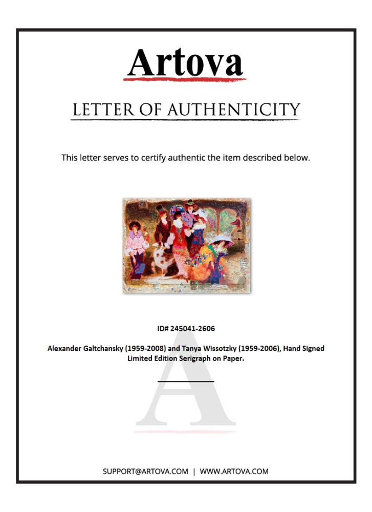 "Nocturne II" is a limited edition serigraph on deckle edged paper by Alexander Galtchansky (1959-2008) and Tanya Wissotzky (1959-2006). It is numbered and hand signed and includes a letter of authenticity. Measures approximately 27" x 37.5" (image).