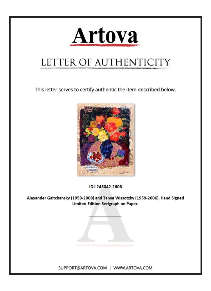 This is a limited edition serigraph on deckle edged paper by Alexander Galtchansky (1959-2008) and Tanya Wissotzky (1959-2006). It is numbered and hand signed and includes a letter of authenticity. Measures approximately 17.5" x 14" (image).
