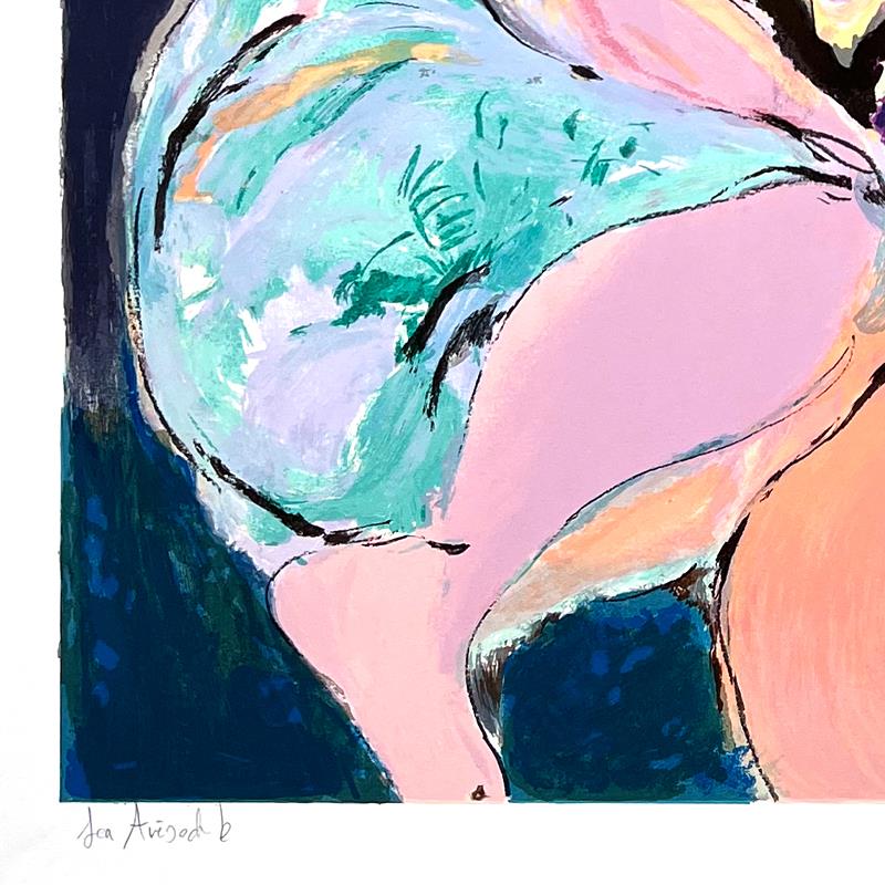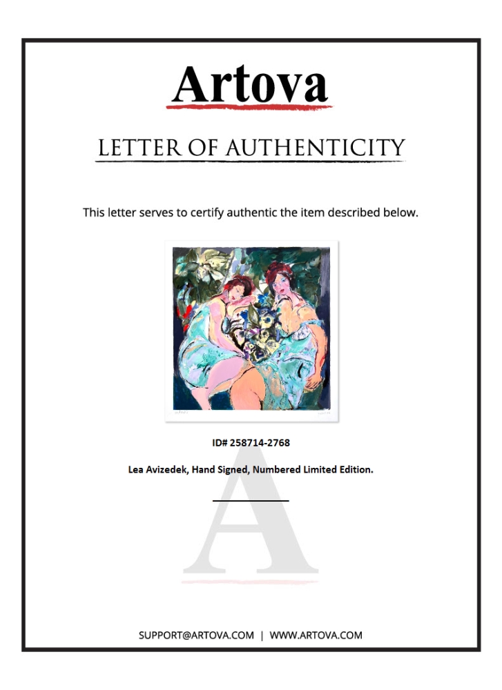 This is a limited edition print on paper by Lea Avizedek. The piece comes hand-signed by the artist, numbered, and with a letter of authenticity. Measures approximately 25.5" x 24".