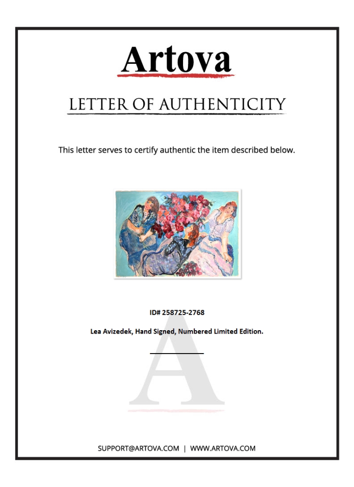 This is a limited edition print on paper by Lea Avizedek. The piece comes hand-signed by the artist, numbered, and with a letter of authenticity. Measures approximately 30" x 43.5".
