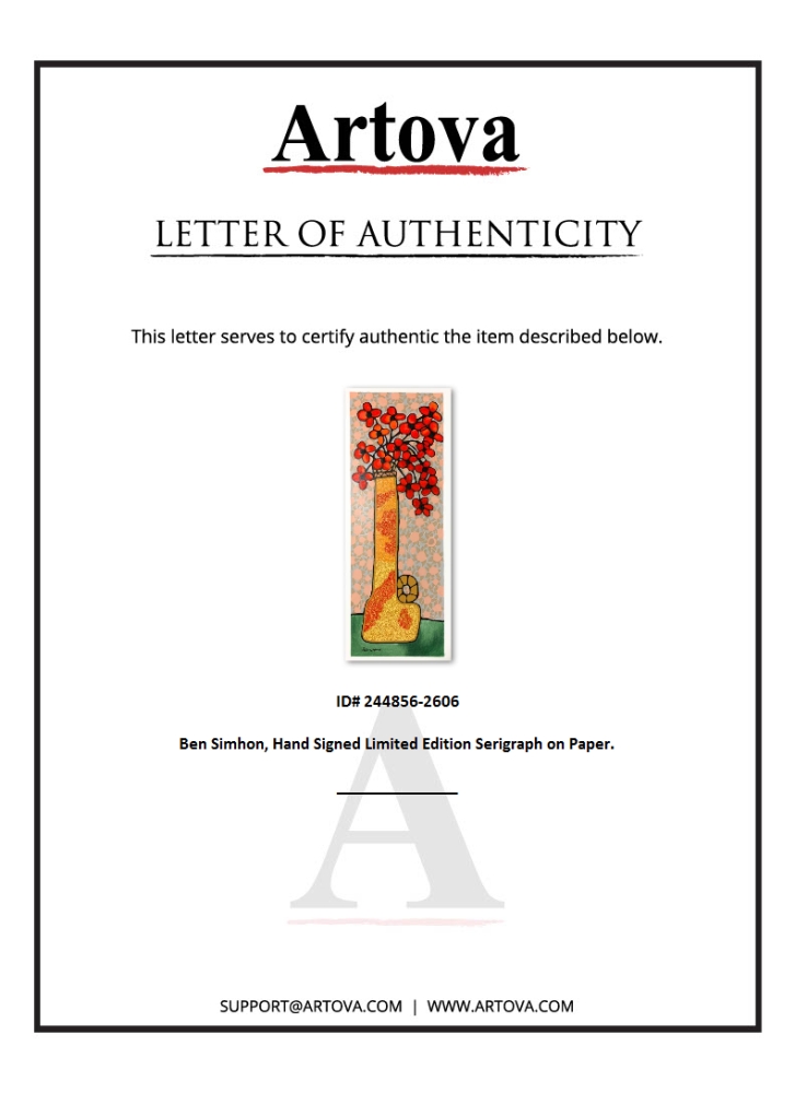 This is a limited edition serigraph on paper by Avi Ben-Simhon. It is numbered and hand-signed and includes a letter of authenticity. Measures approximately 41" x 14" (image).