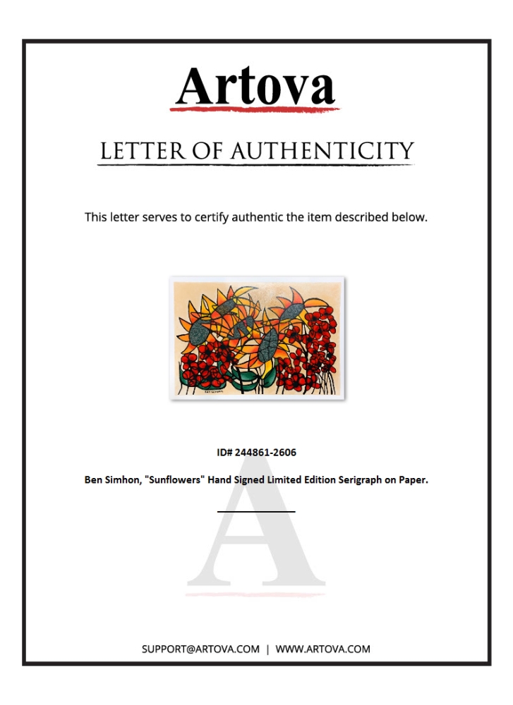 "Sunflowers" LE 18x27 Serigraph on Paper by Avi Ben-Simhon (Artova)