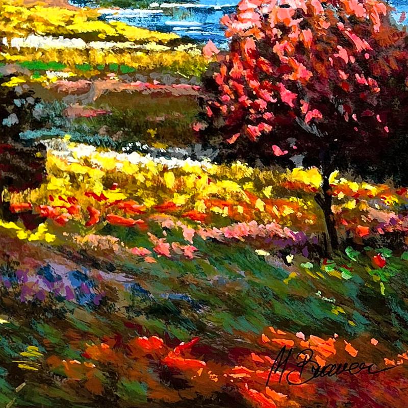 This is a limited edition serigraph on paper by Mark Braver. The piece comes hand-signed by the artist, numbered, and with a letter of authenticity. Measures approximately 17" x 17".