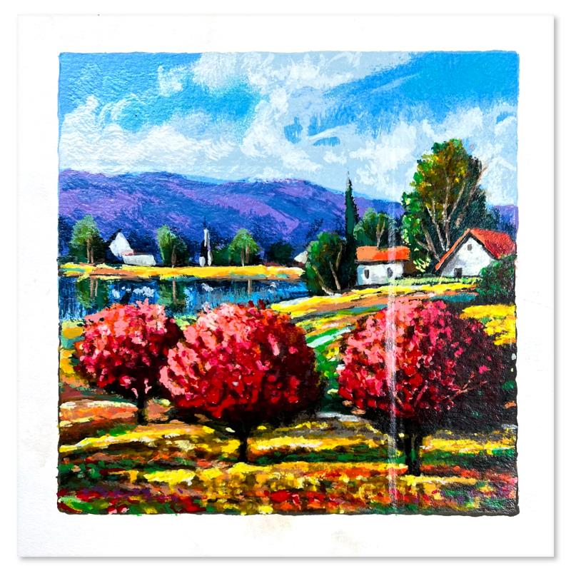 This is a limited edition serigraph on paper by Mark Braver. The piece comes hand-signed by the artist, numbered, and with a letter of authenticity. Measures approximately 8" x 8".