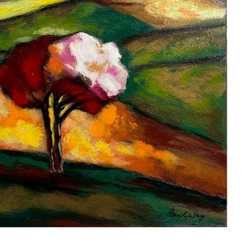 This is a limited edition serigraph on paper by Slava Brodinsky. The piece comes hand-signed by the artist, numbered, and with a letter of authenticity. Measures approximately 20" x 11".