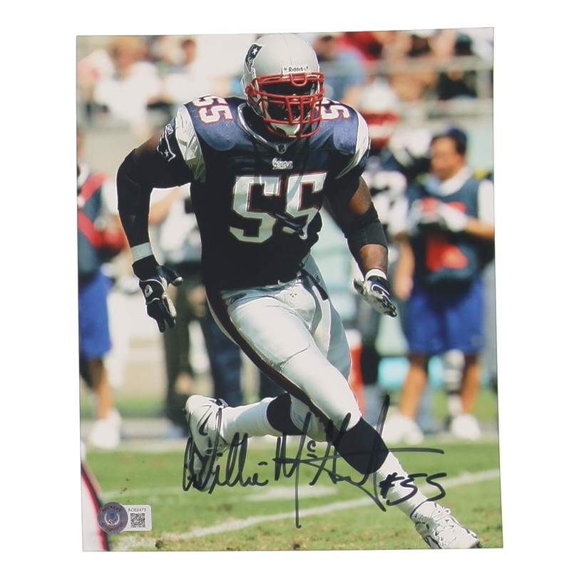 Photo measures 8" x 10" in size and has been hand-signed by Willie McGinest (New England Patriots).