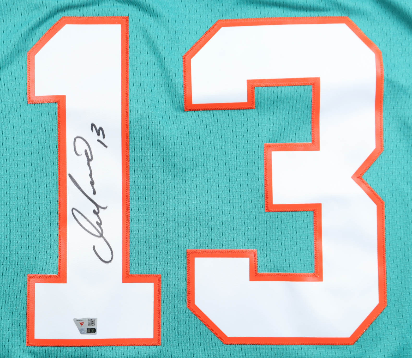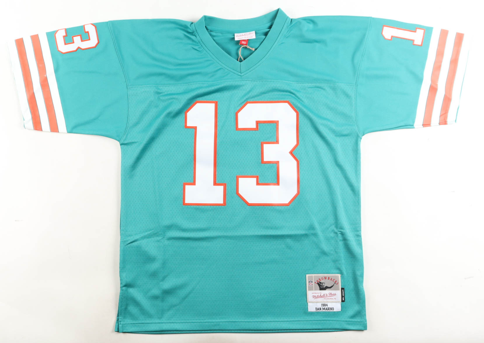 Mitchell & Ness jersey with everything sewn on, size 44 (L). Hand-signed by Dan Marino (Miami Dolphins, HOF).