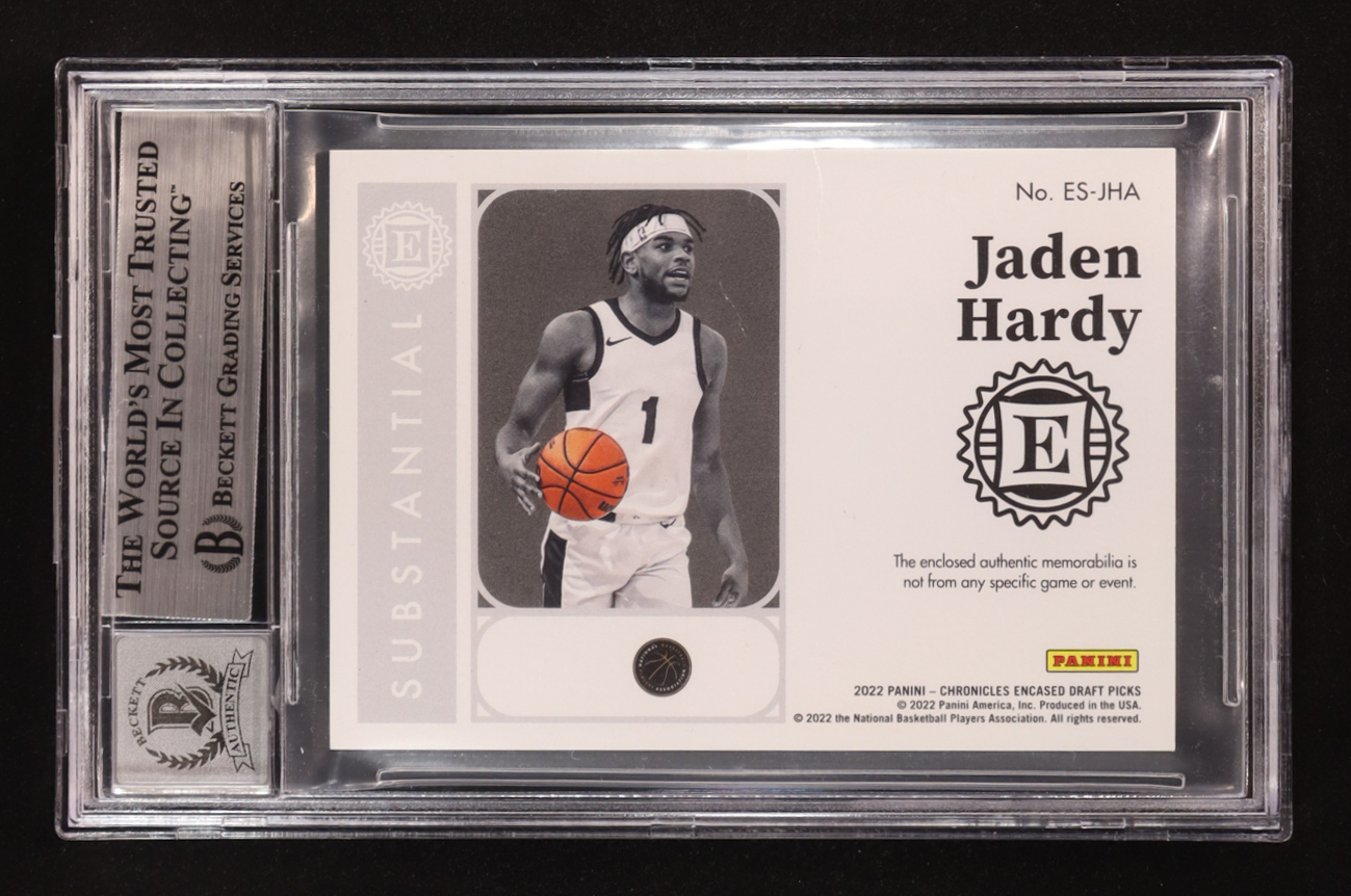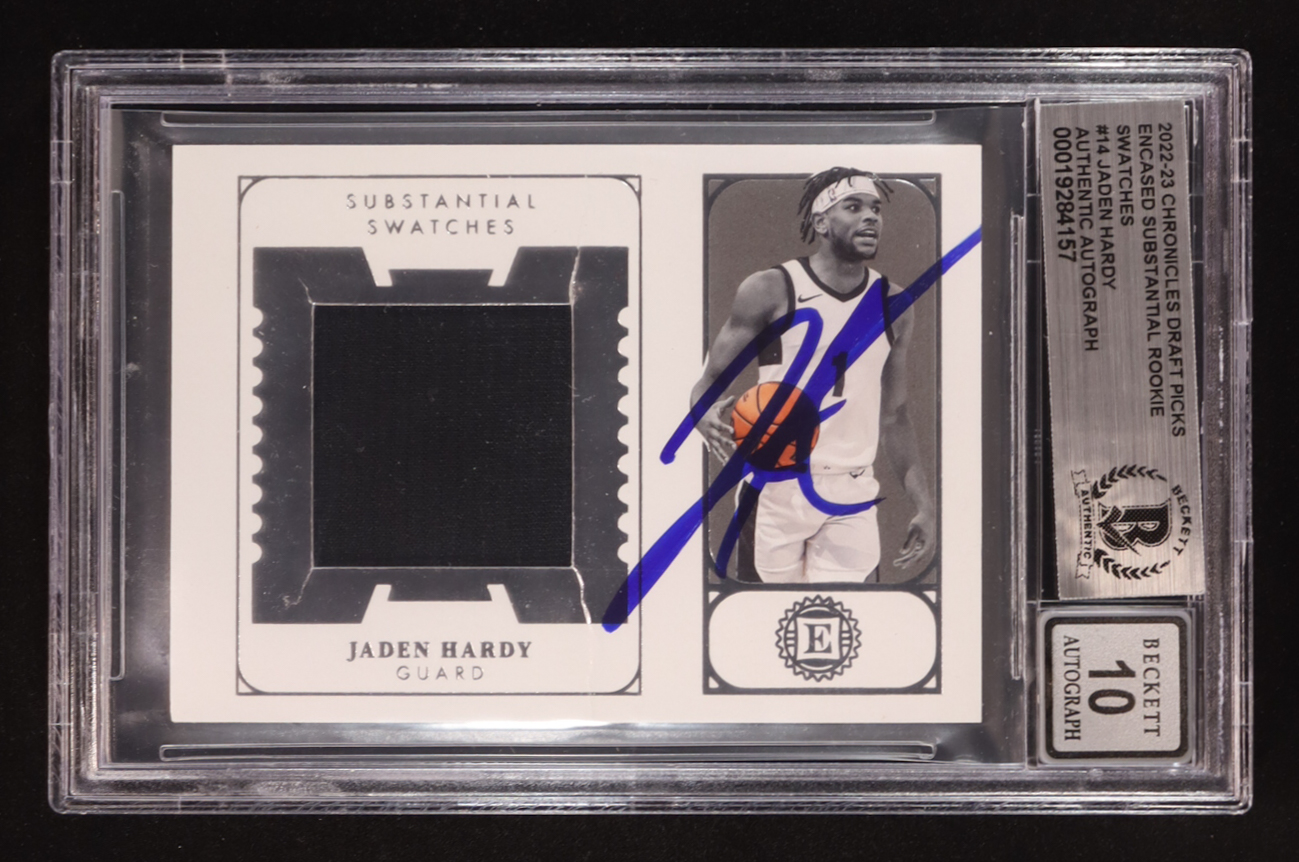Jaden Hardy Signed 2022-23 Panini Chronicles Draft Picks Encased Substantial Rookie Swatches #14 RC (BGS | Autograph Graded BGS 10)