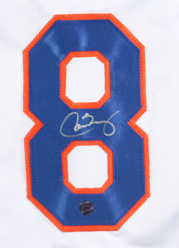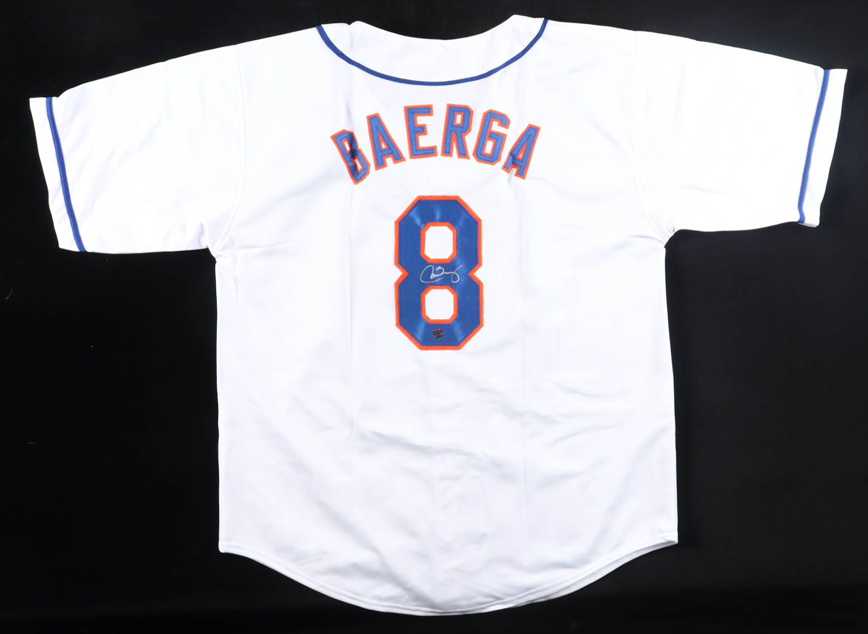 Custom jersey, everything is sewn on, size XL. Hand-signed and inscribed by Carlos Baerga.
