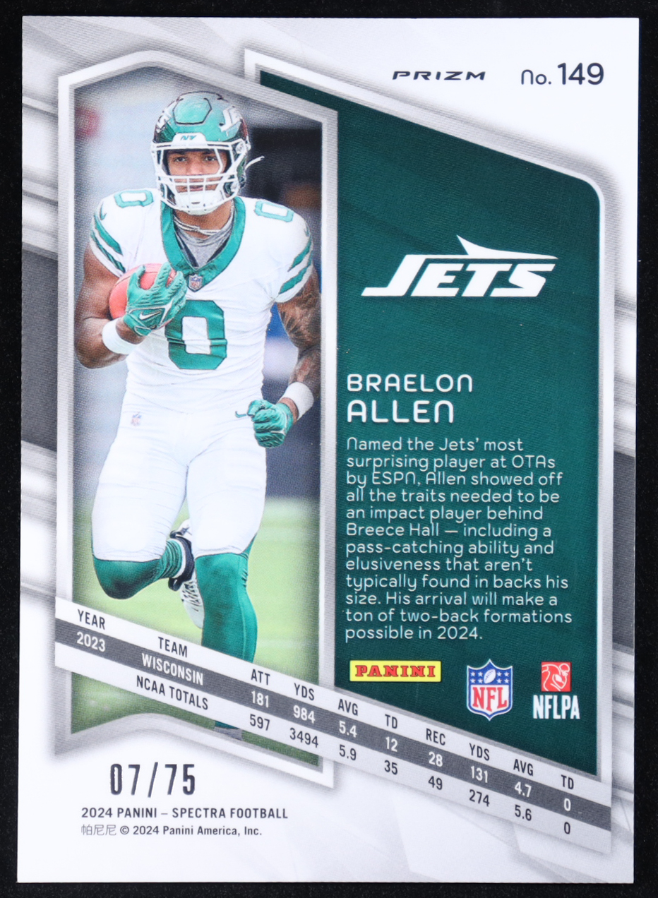 Braelon Allen 2024 Panini Spectra Hyper #149 #07/75 RC