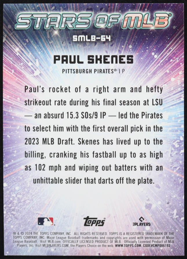 Paul Skenes 2024 Topps Stars of MLB #SMLB64 RC