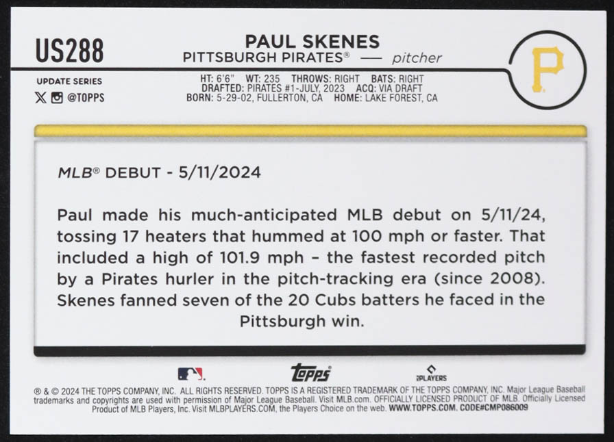 Paul Skenes 2024 Topps Update #US288 RC