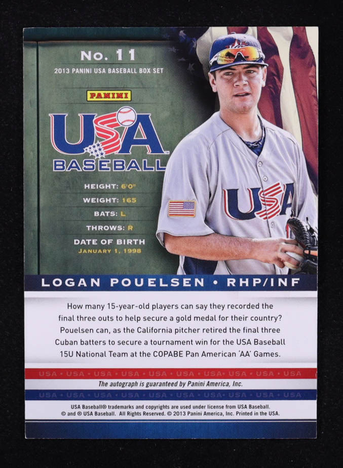 Logan Pouelsen 2013 USA Baseball 15U National Team Profile Signatures #11 #062/100