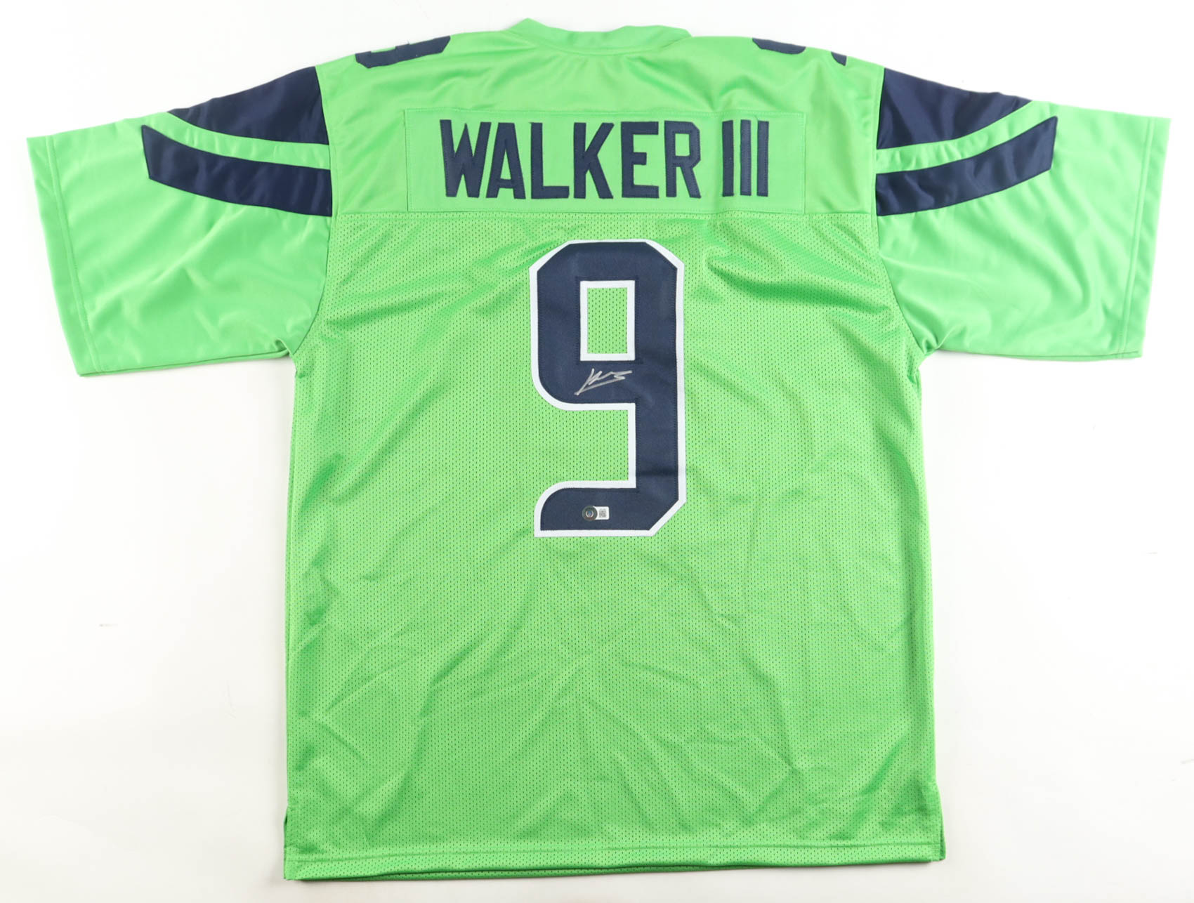 Custom jersey with everything sewn on, size XL. Hand-signed by Kenneth Walker III.