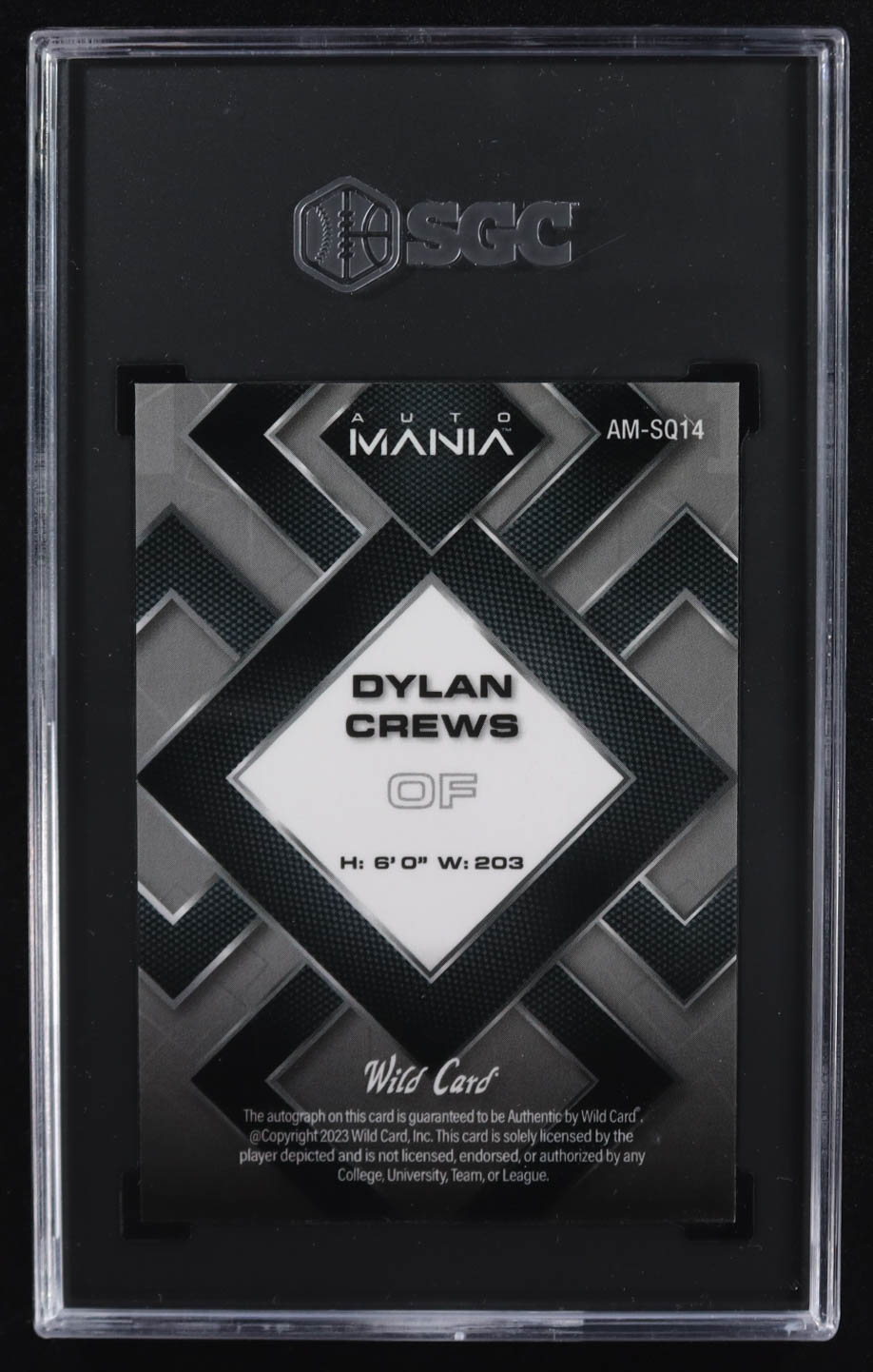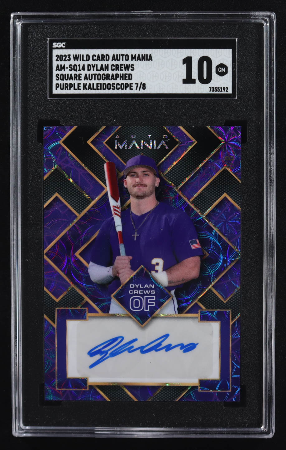 Dylan Crews 2023 Wild Card Auto Mania Autographs Scope Purple #AMSQ14 RC #7/8 (SGC 10)