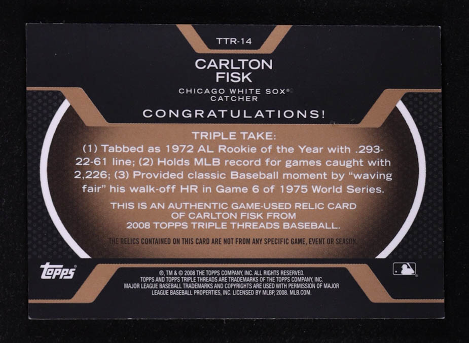 Carlton Fisk 2008 Topps Triple Threads Relics Sepia #14 #09/27