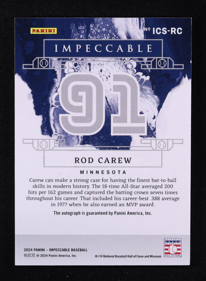 Rod Carew 2024 Panini Impeccable Impeccable Cooperstown Signatures #18 #41/91