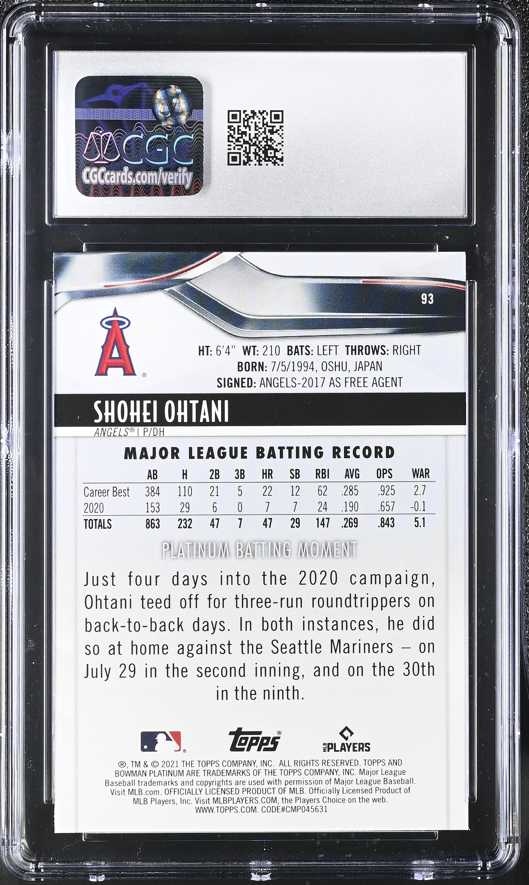 Shohei Ohtani 2021 Bowman Platinum #93 (CGC 10)