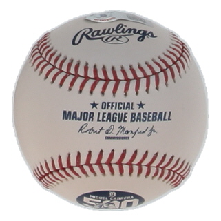 Rawlings Official Major League baseball. Hand-signed by Miguel Cabrera (Detroit Tigers). Please note, ball has been naturally stained and toned.