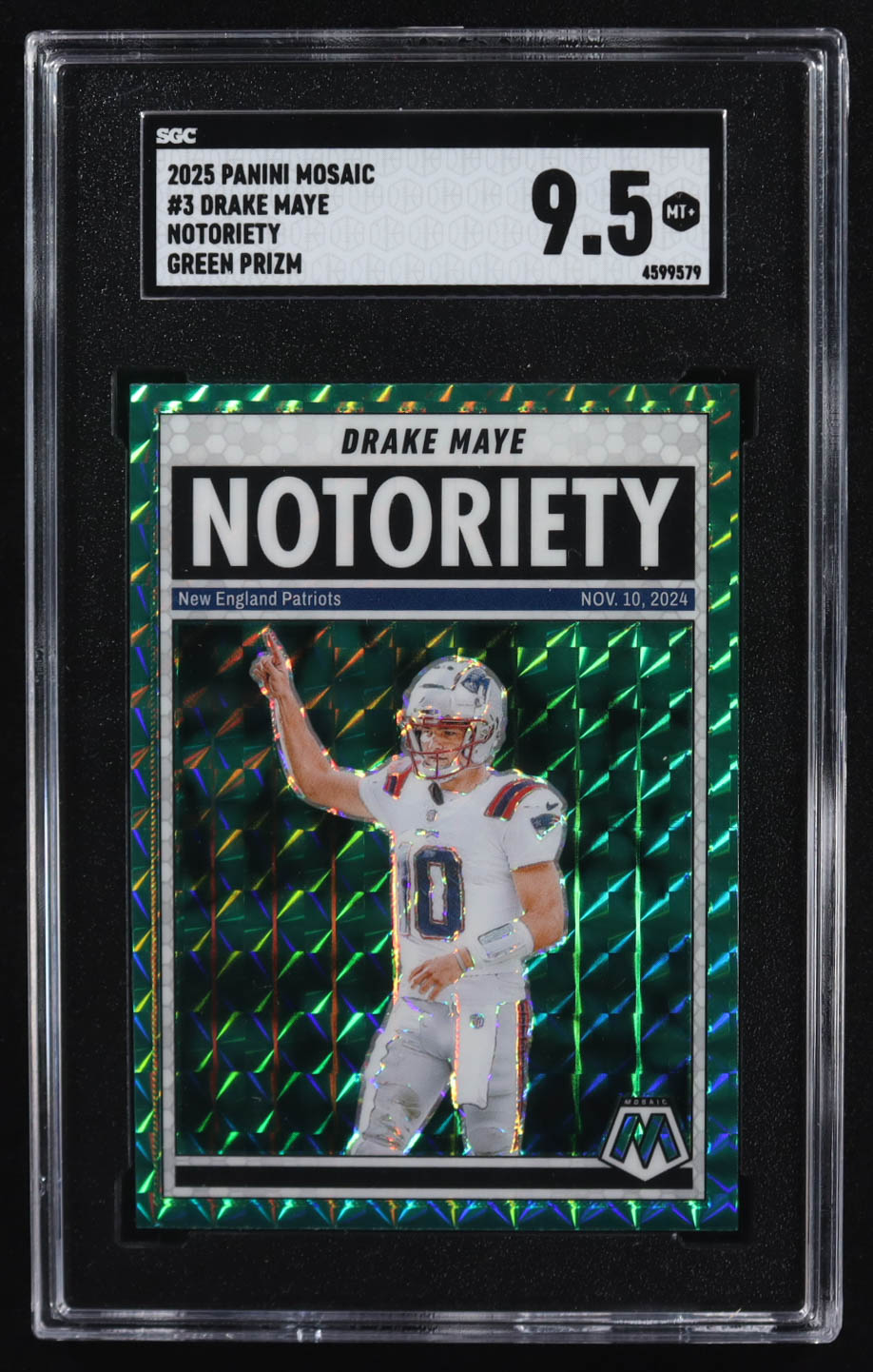 Drake Maye 2025 Panini Mosaic Notoriety Mosaic Green #3 (SGC 9.5)