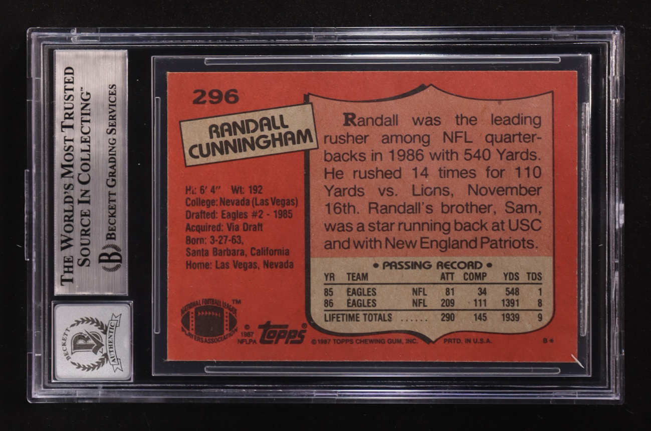 Randall Cunningham Signed 1987 Topps #296 RC (BGS | Autograph Graded BGS 10)