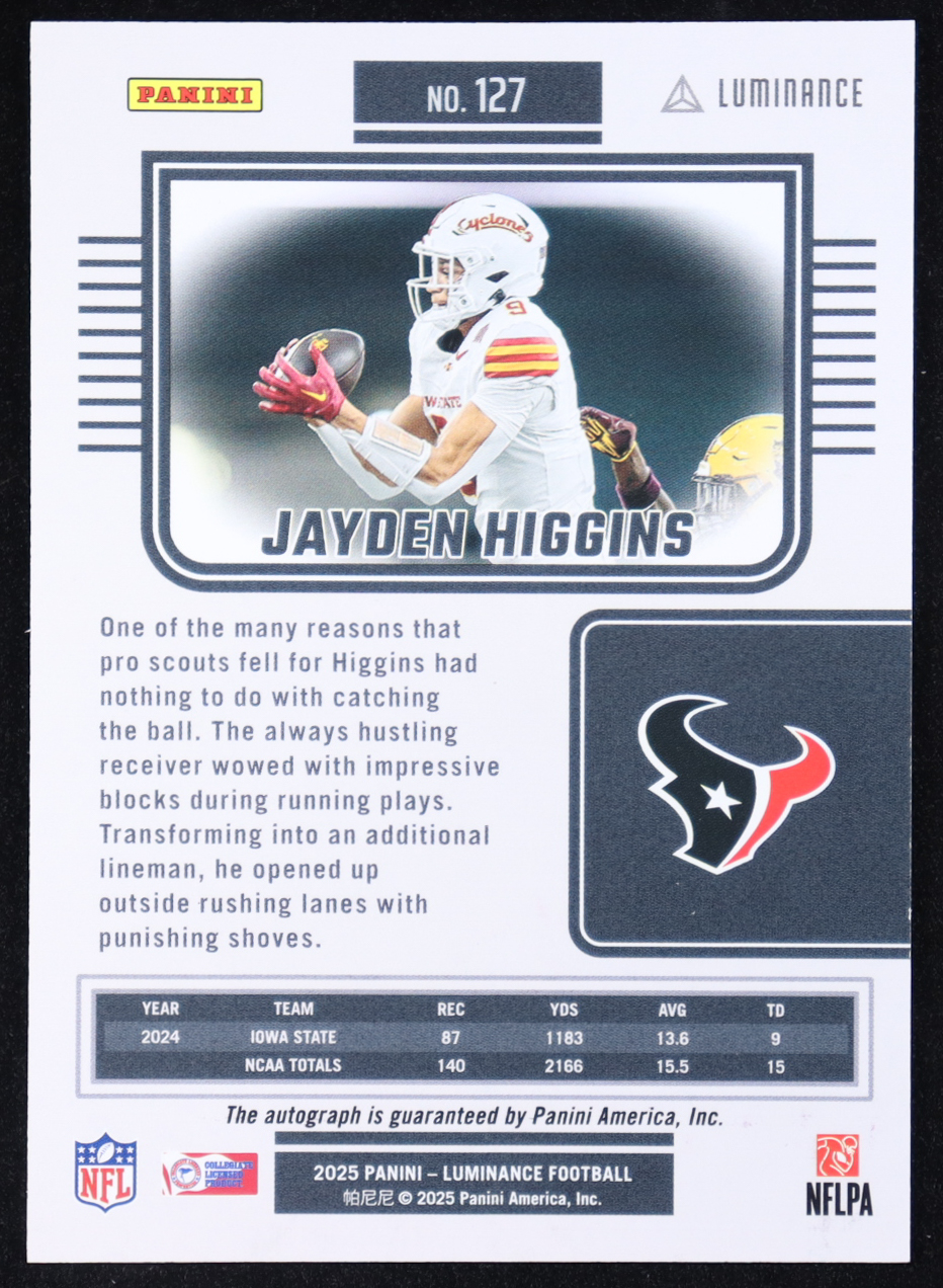 Jayden Higgins 2025 Panini Luminance Autographs #127 #440/700 RC