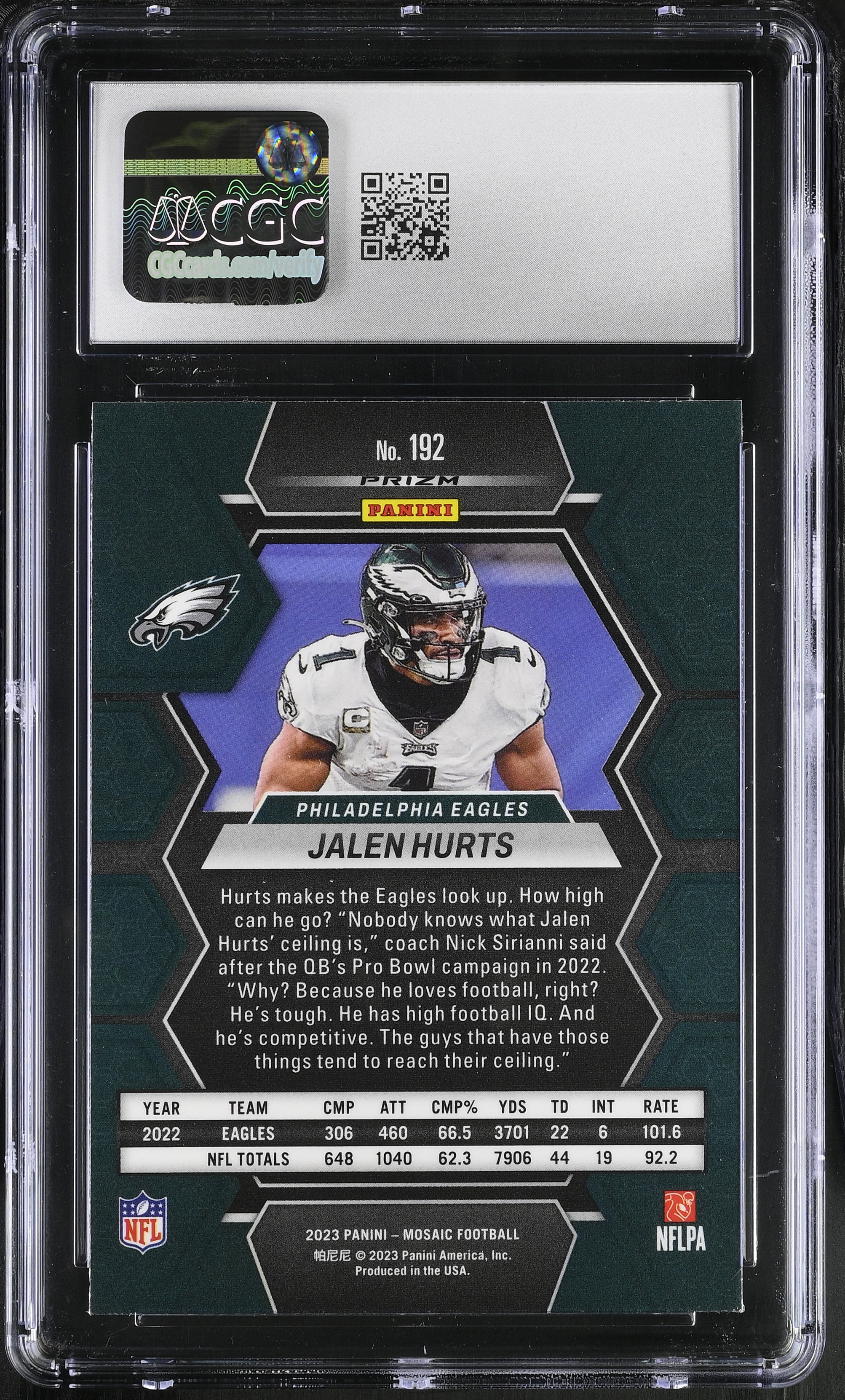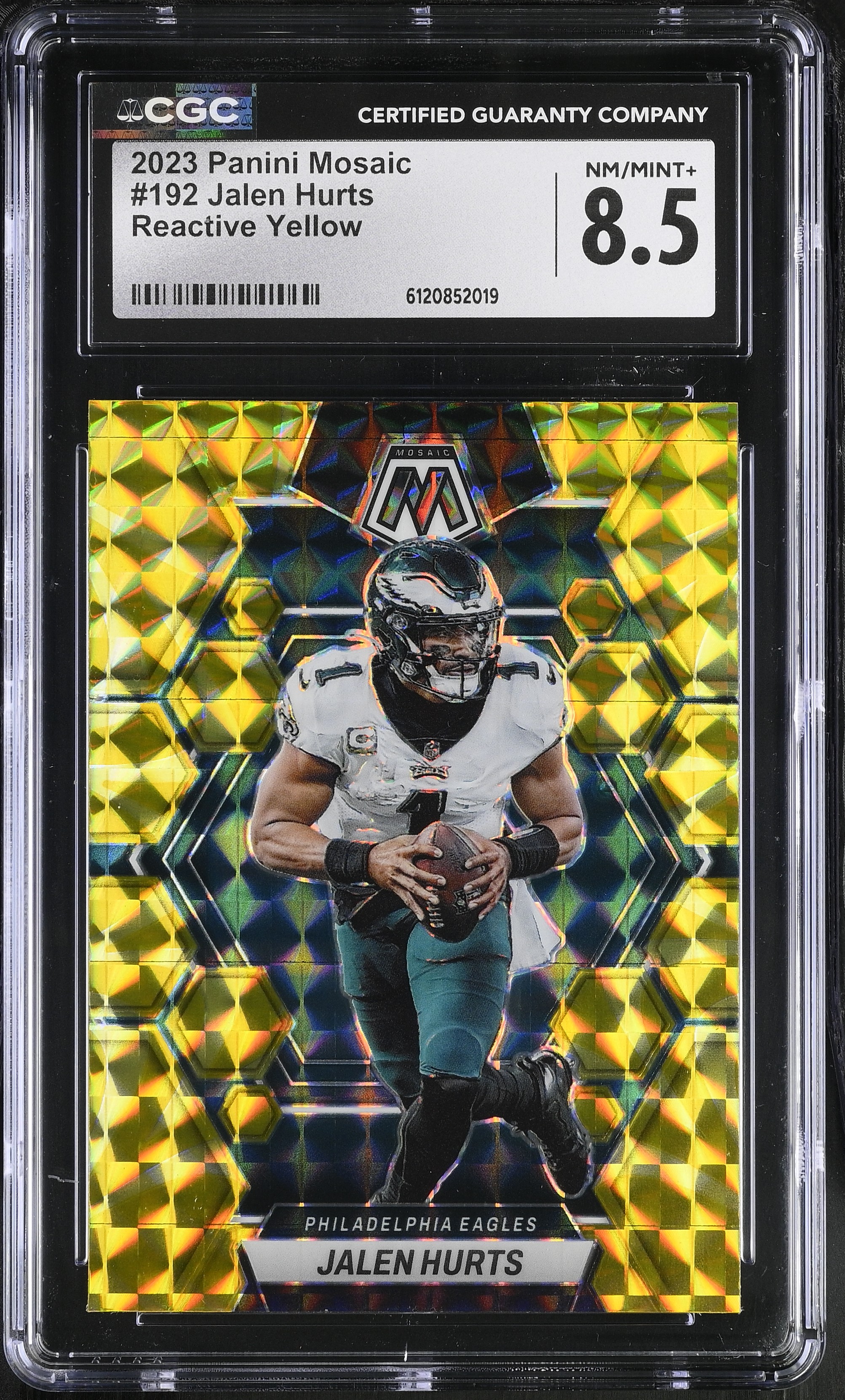 Jalen Hurts 2023 Panini Mosaic Mosaic Reactive Yellow #192 (CGC 8.5)