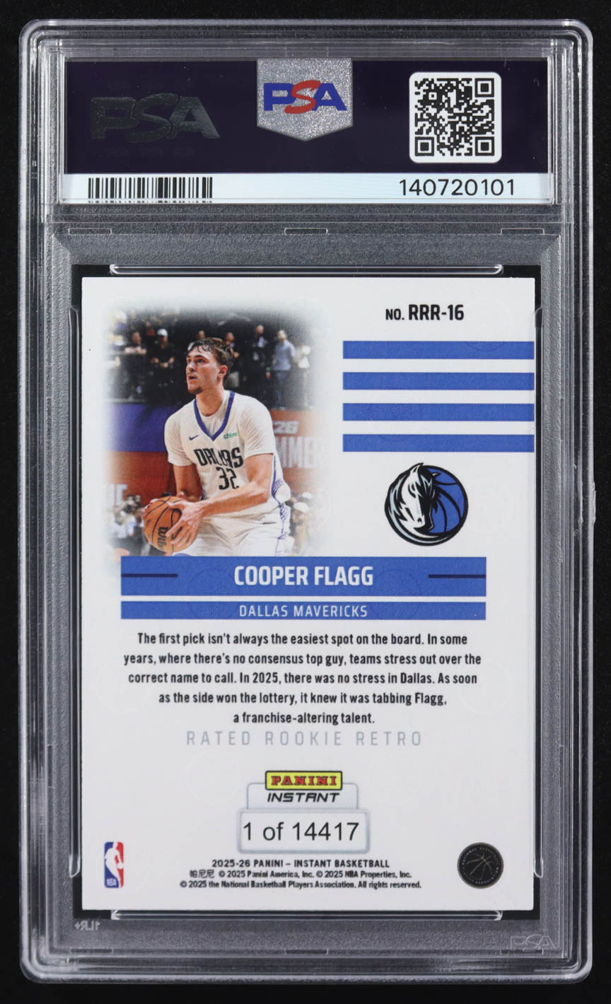 Cooper Flagg 2025-26 Panini Instant Rated Rookie Retro #RRR16 RC (PSA 8)