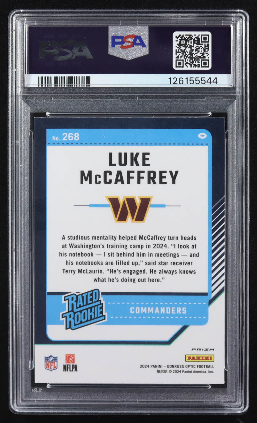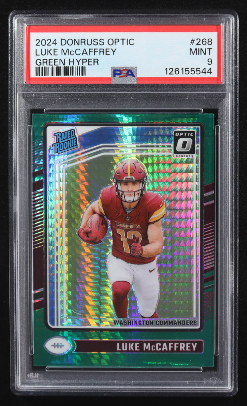 Luke McCaffrey 2024 Donruss Optic Green Hyper #268 RR RC (PSA 9)