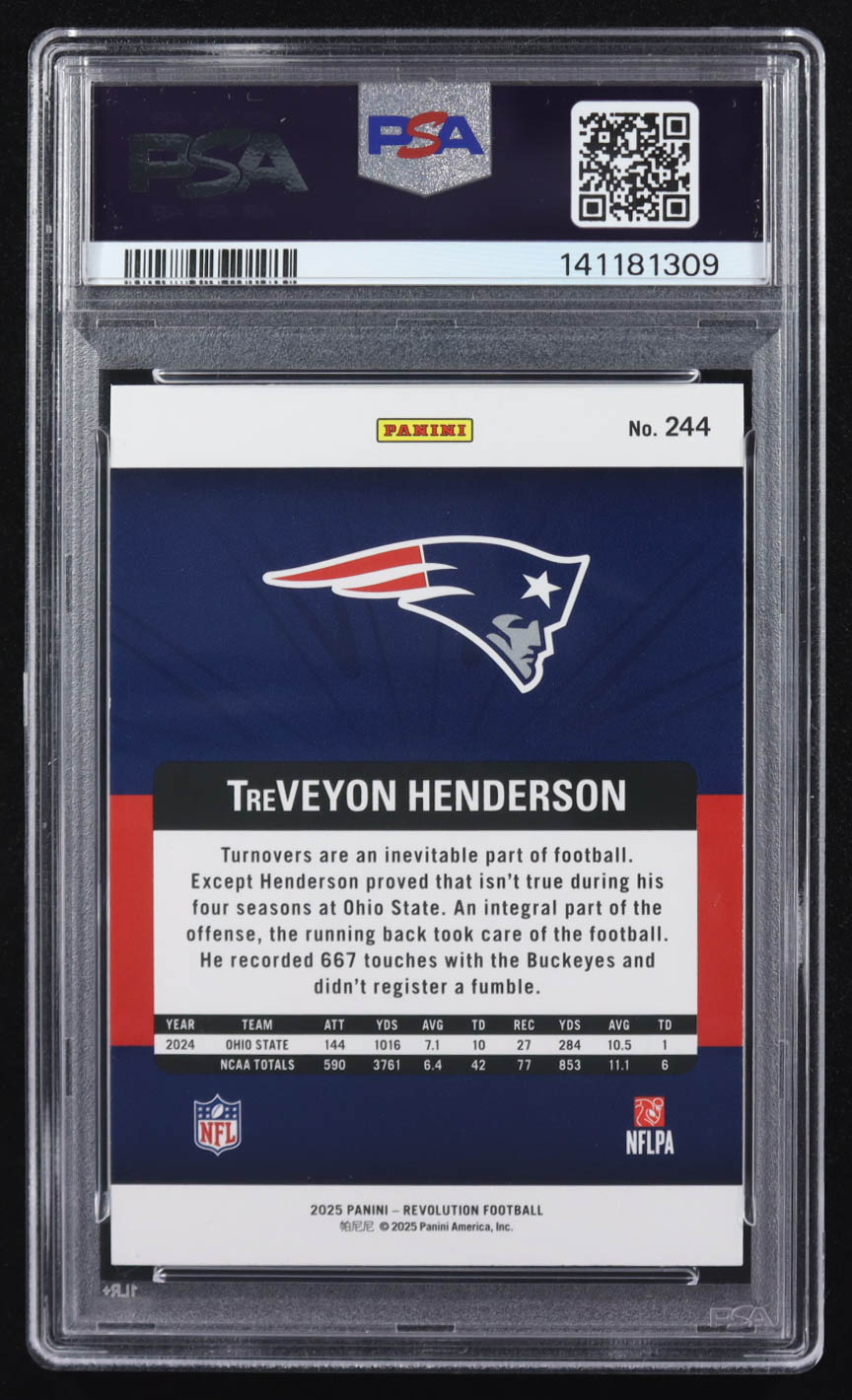TreVeyon Henderson 2025 Panini Revolution #244 RC (PSA 9)