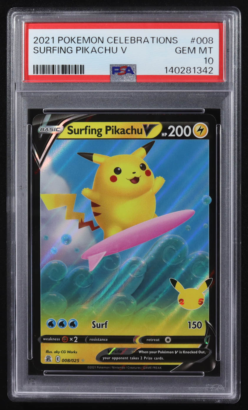 Surfing Pikachu V 2021 Pokemon Celebrations #008 (PSA 10)