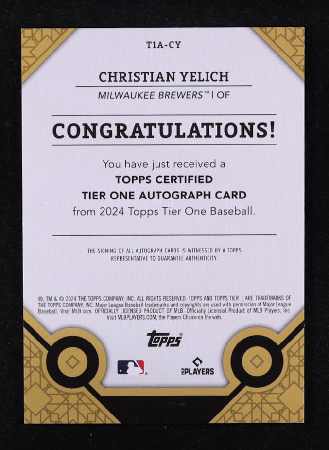 Christian Yelich 2024 Topps Tier One Autographs Green Foil #T1ACY #05/20