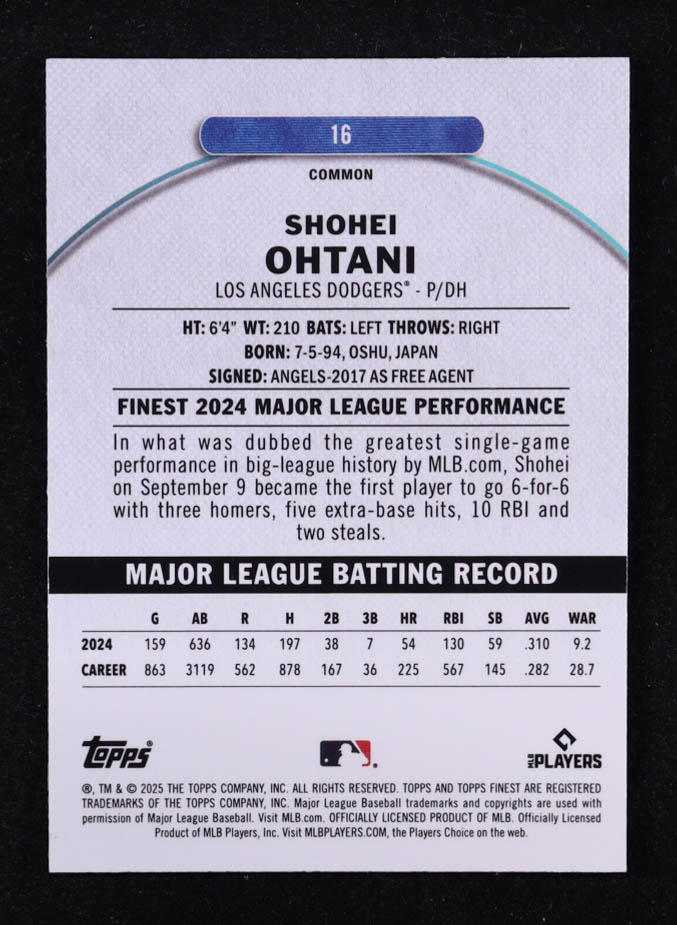 Shohei Ohtani 2025 Finest Purple Refractors #16 #131/250