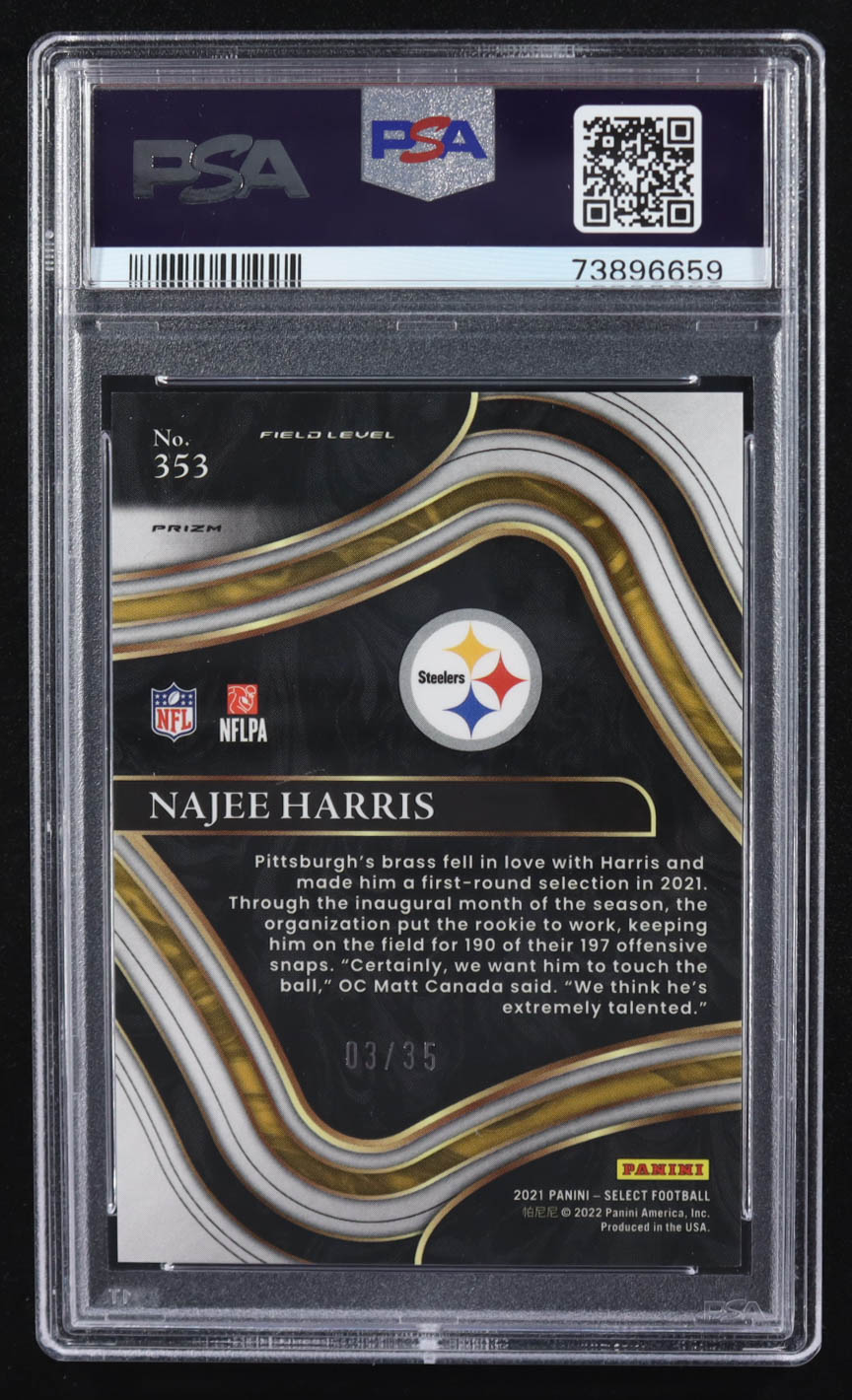 Najee Harris 2021 Select Prizm White #353 RC #3/35 (PSA 9)