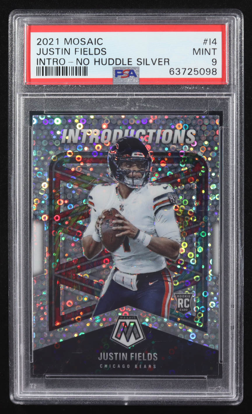 Justin Fields 2021 Panini Mosaic Introductions No Huddle Silver #4 RC (PSA 9)