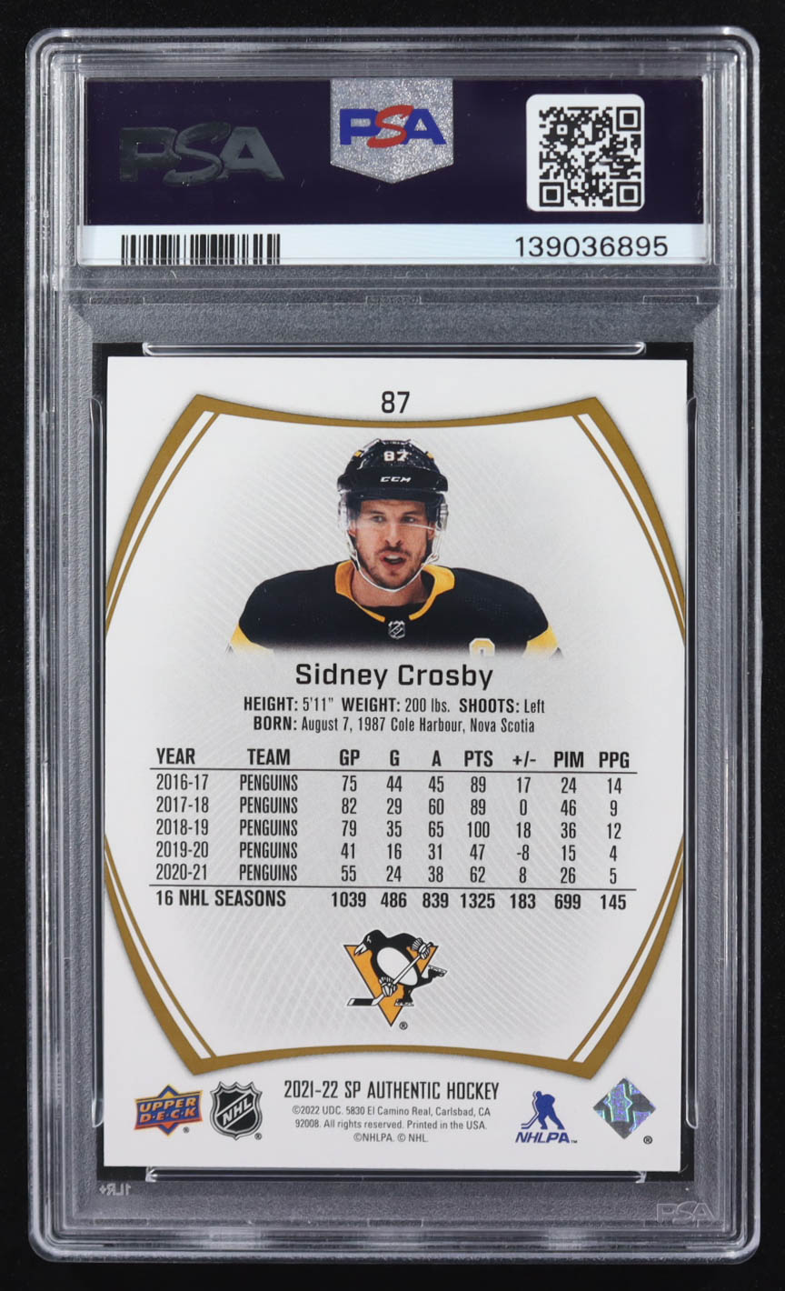 Sidney Crosby 2021-22 SP Authentic Limited Gold #87 #84/99 (PSA 8)