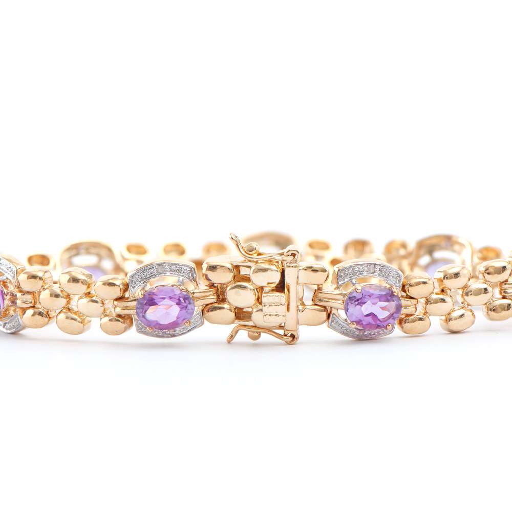 7.76 CTW Natural Amethyst & Diamonds 18K Gold Plated Designer Bracelet Size 7.6 Inches | Estimated Value $1,999 (AMG)