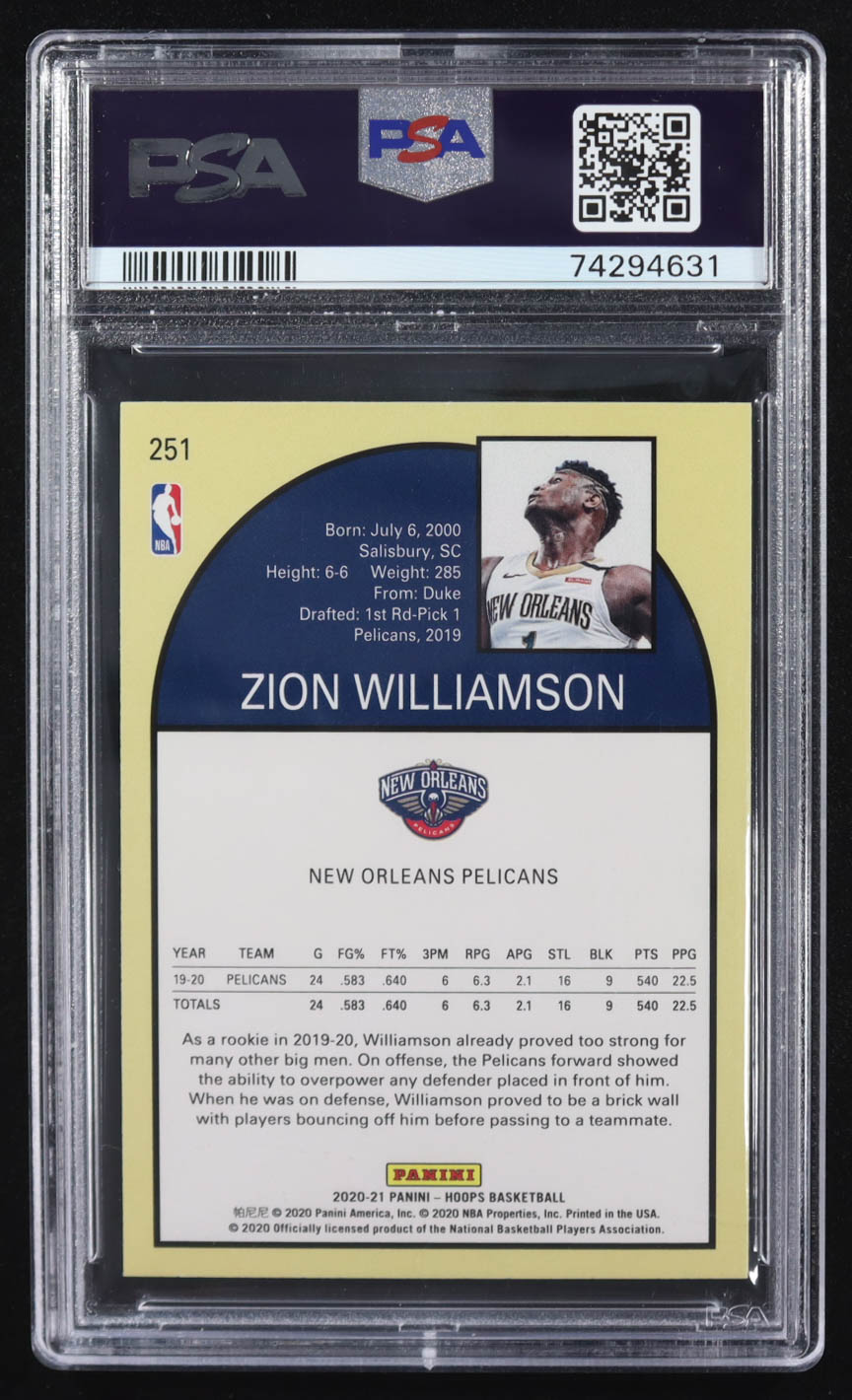 Zion Williamson 2020-21 Hoops #251 (PSA 10)