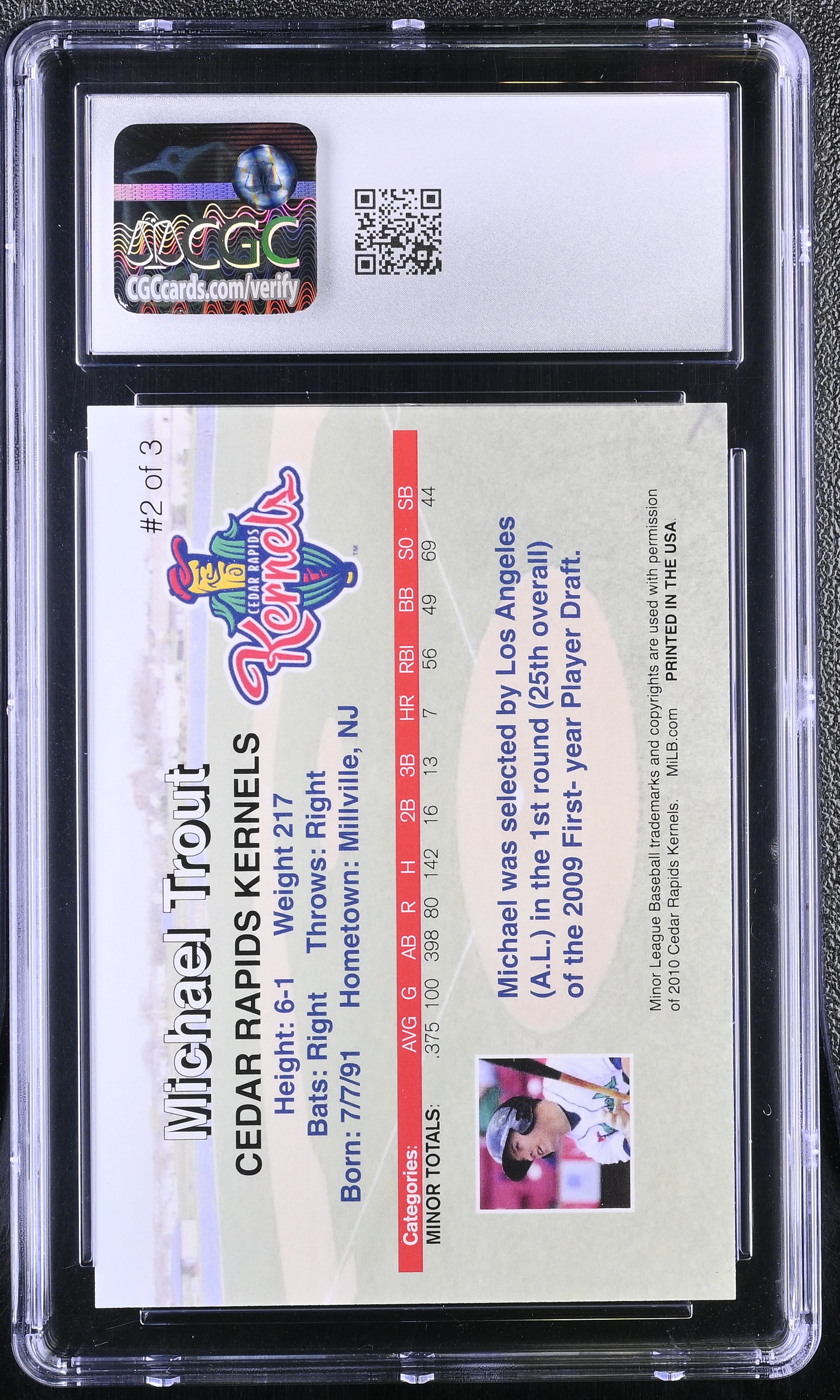 Mike Trout 2010 Cedar Rapids Kernels Rising Alumni Team Issue #2 RC (CGC 9)