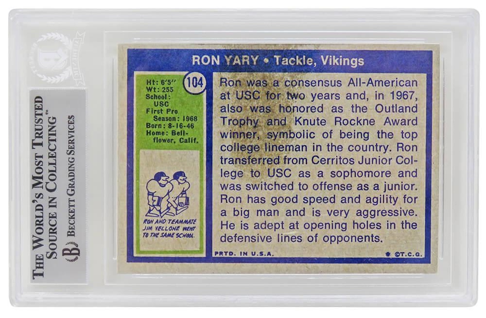 Ron Yary Signed 1972 Topps #104 RC Inscribed "HOF 01" (BGS)