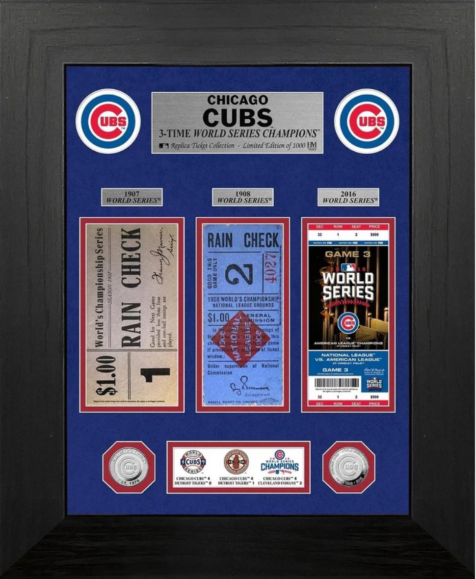 Chicago Cubs "3-Time World Series Champions" Custom Framed Ticket Display with (2) Silver Plated Coins