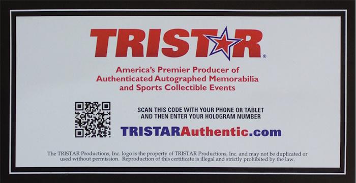 The autograph includes an official TriStar hologram for authenticity purposes.
