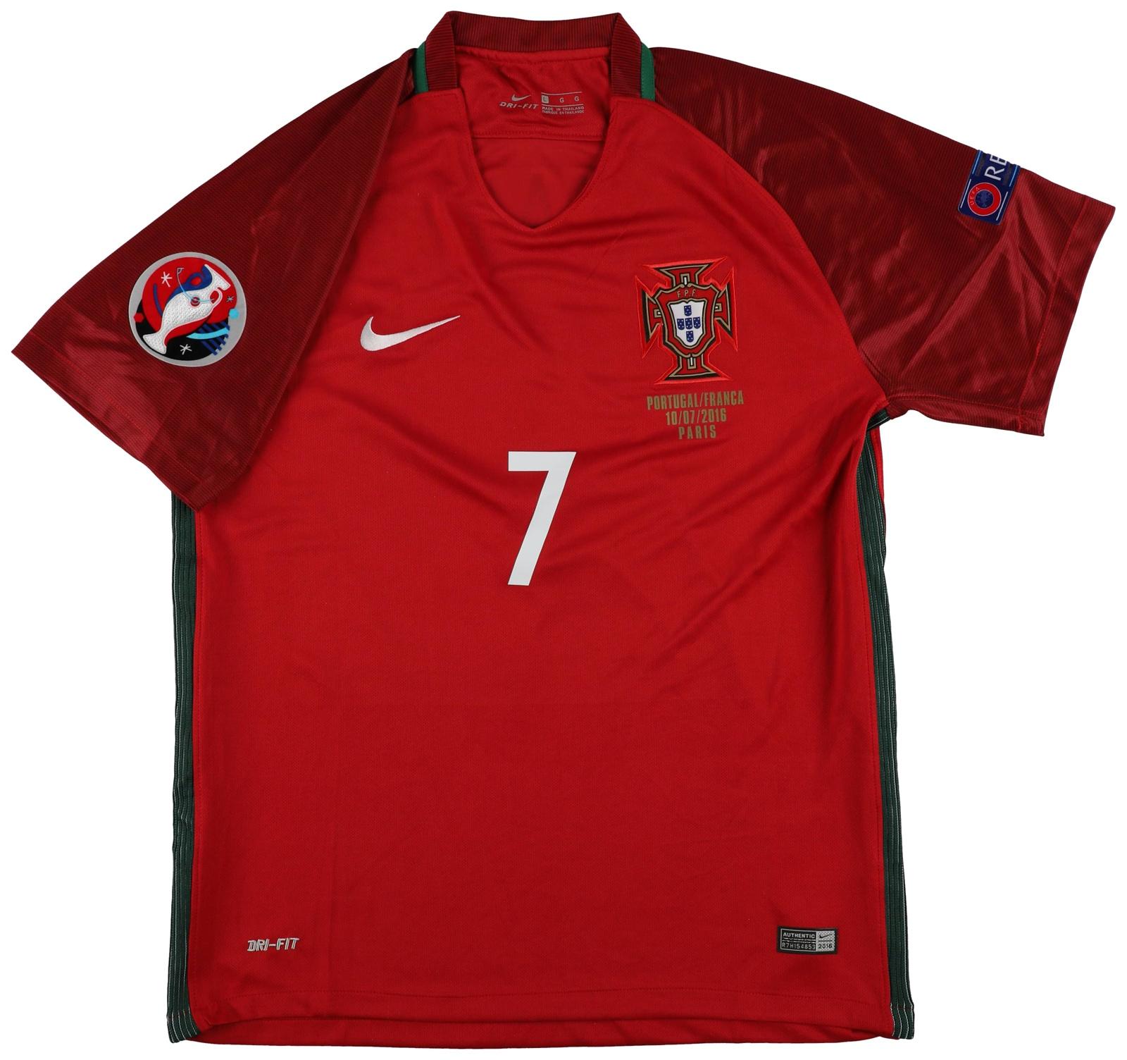 Nike authentic jersey with everything pressed on, size L. Hand-signed by Cristiano Ronaldo (Portugal National Team).