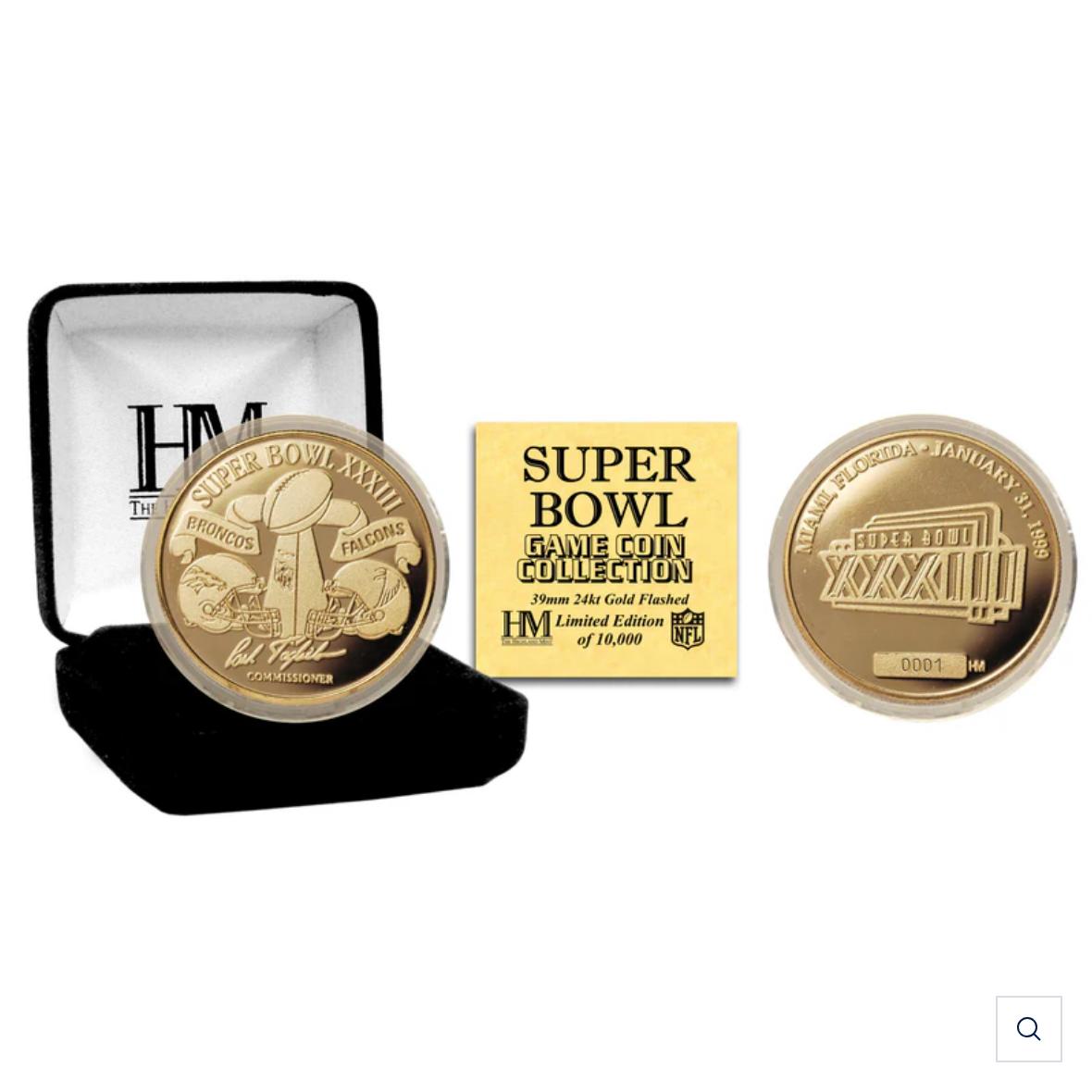 1999 Commemorative Super Bowl XXXIII 24kt Gold Plated Flip Coin: Broncos vs Falcons