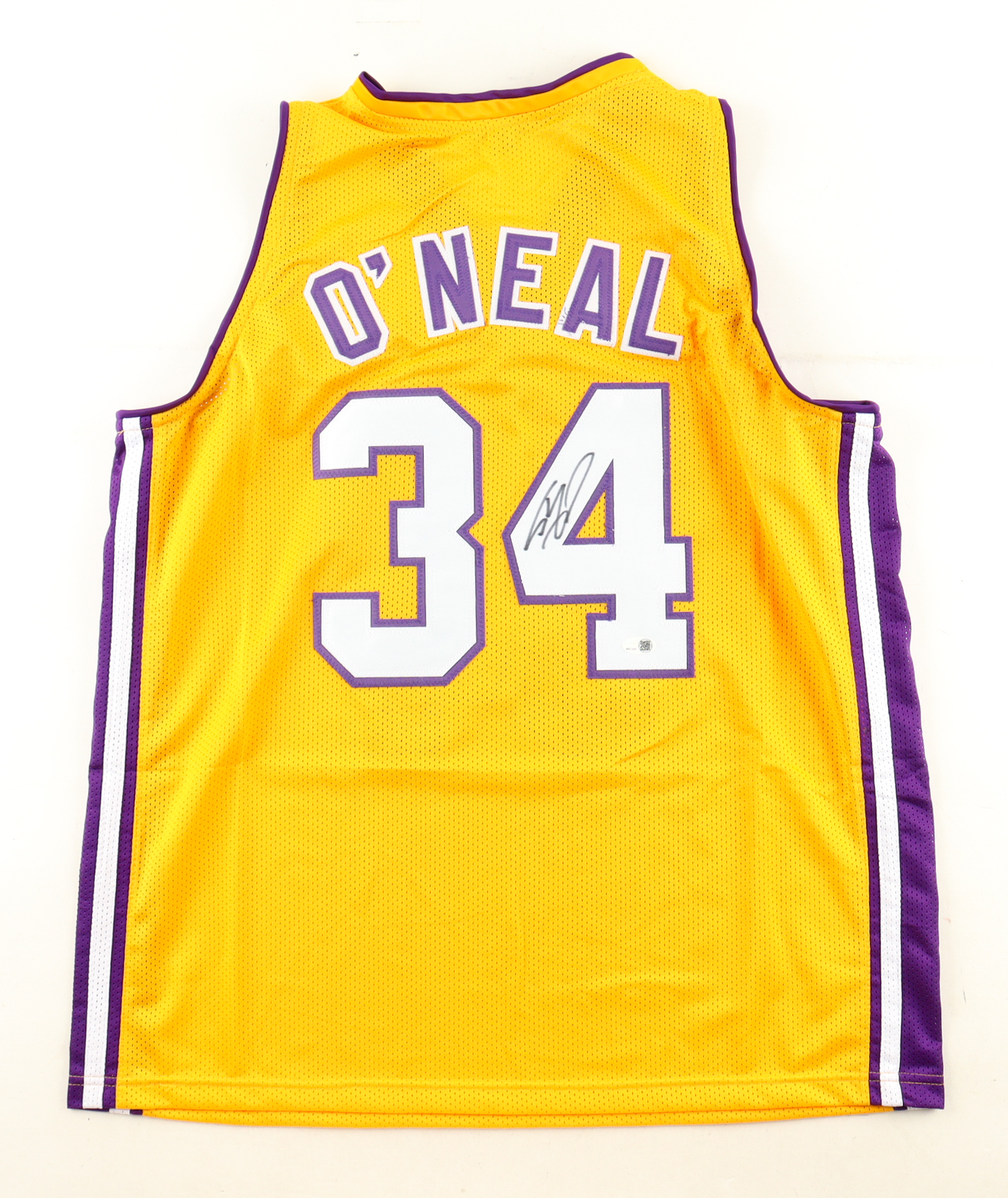 Custom jersey with everything sewn on, size XL. Hand-signed by Shaquille O'Neal (HOF).