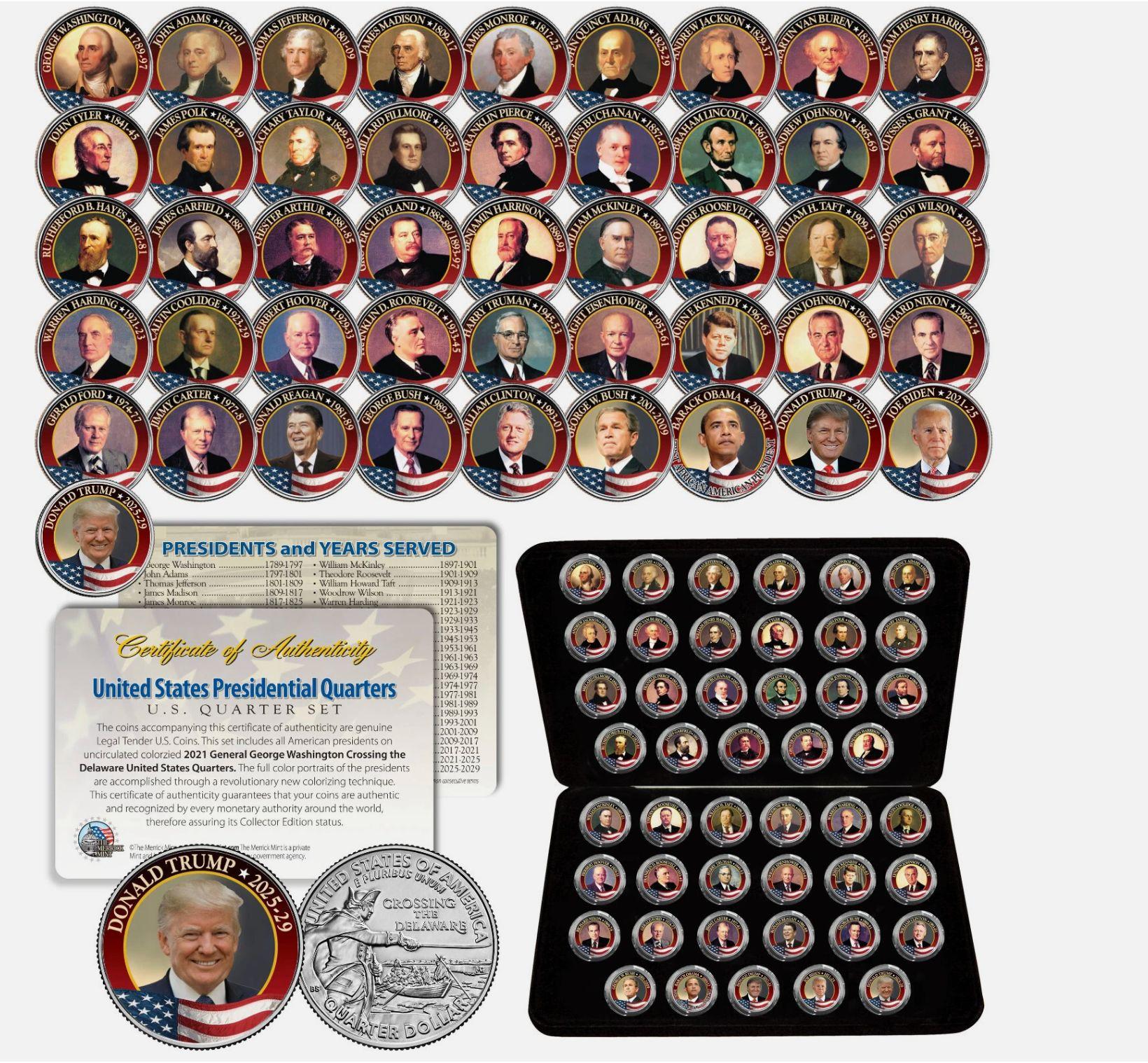"United States Presidents" Set of (47) Washington Quarter Coins with Display Box