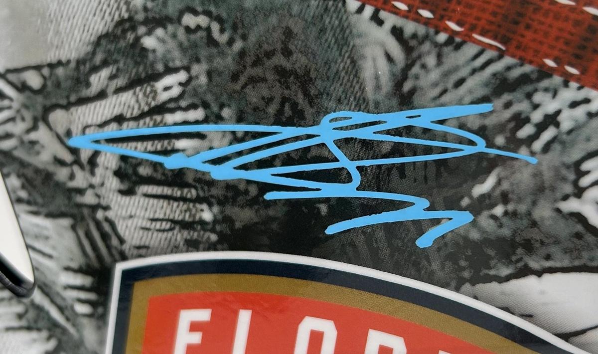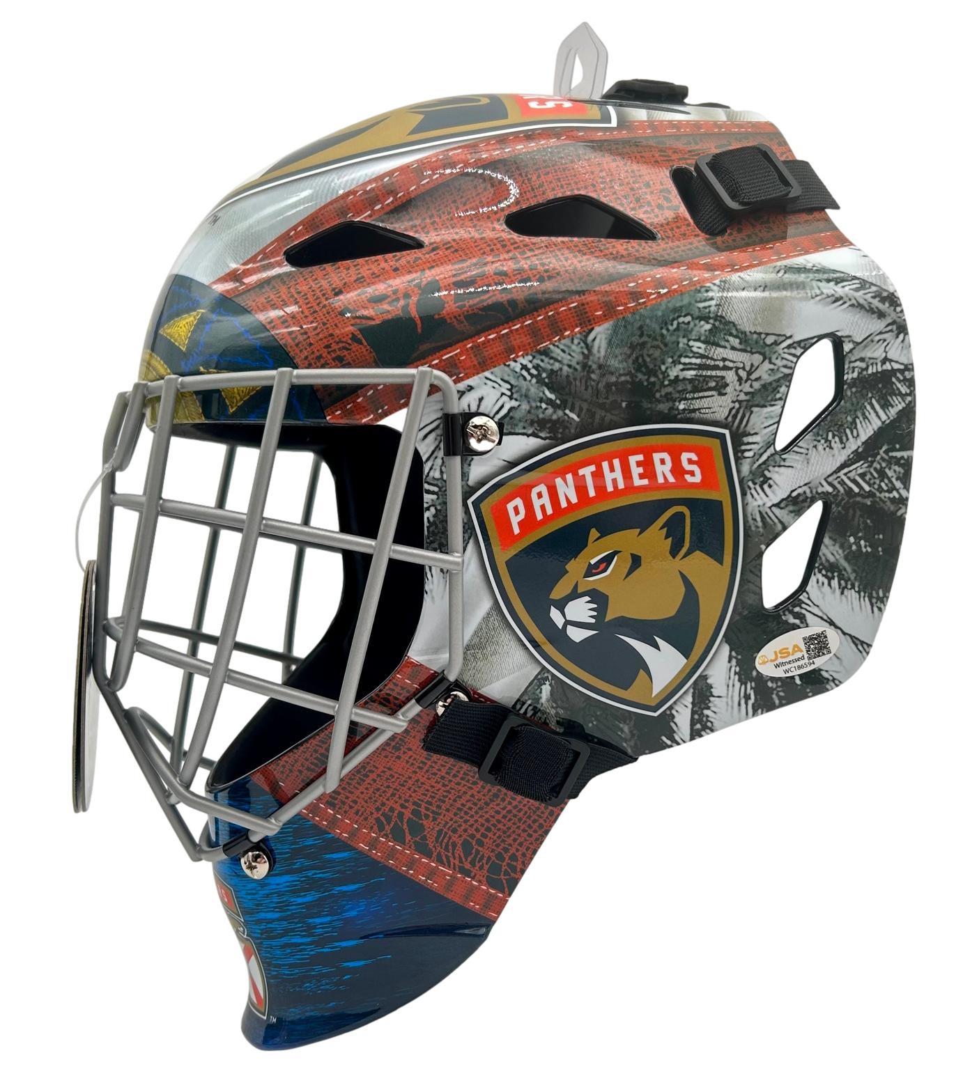 Florida Panthers full-size replica goalie mask. Hand-signed by Sergei Bobrovsky.