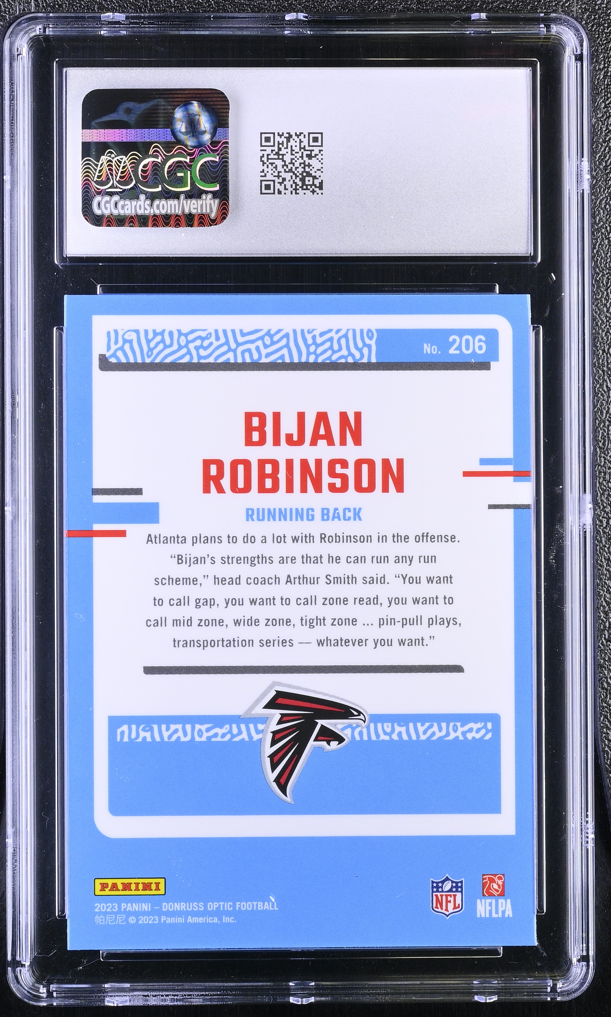 Bijan Robinson 2023 Donruss Optic #206 RR RC (CGC 9)