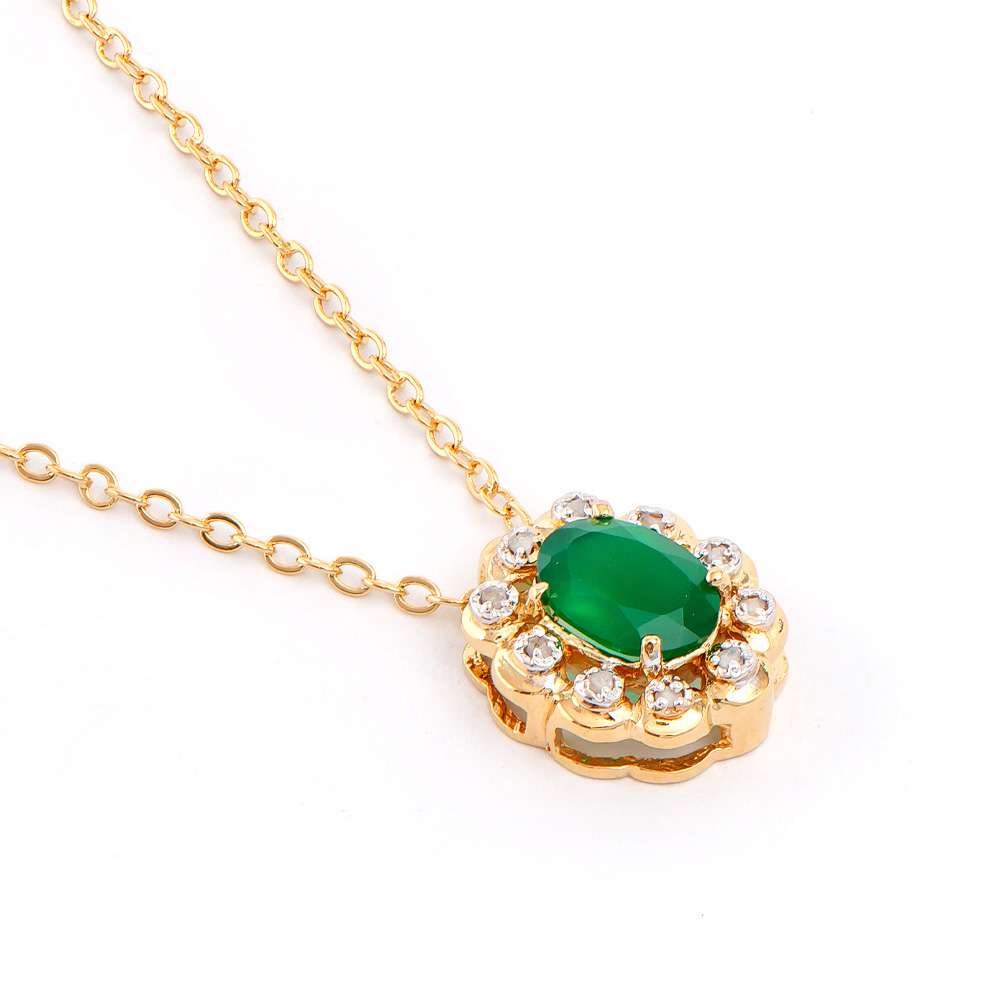 1.17 CTW Natural Green Agate & Diamonds 18K Gold Plated Designer Necklace Size 18 Inches (3.35 grams)