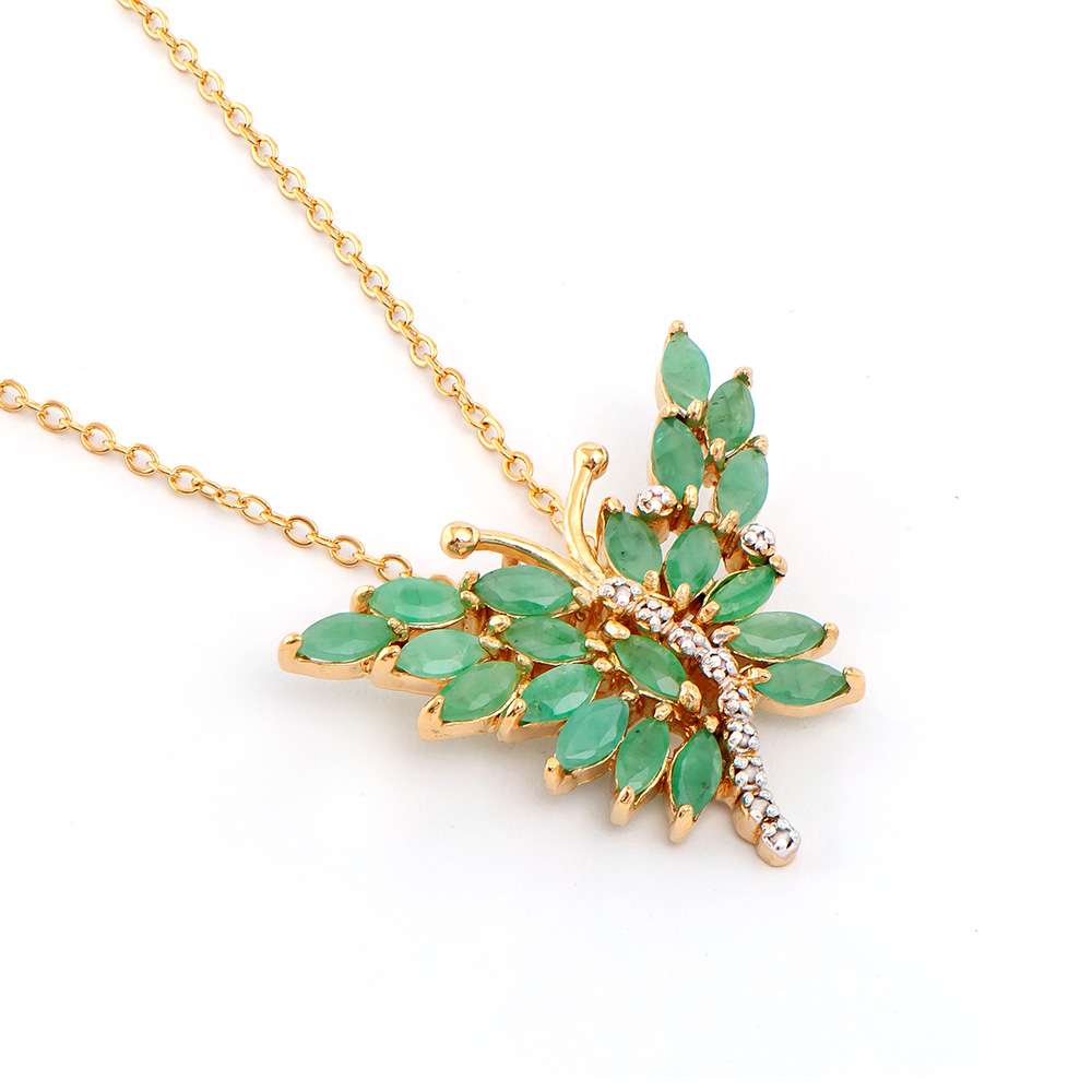 3.64 CTW Natural Emeralds & Diamonds 18K Gold Plated Designer Necklace Size 18 Inches (5.85 grams)